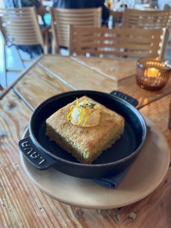 They brought me a menu marked off with anything they would have to substitute, omit, or replace. They were willing to make any of the dishes work minus the obvious ones, like fish dishes. Although there are allergens in the kitchen, they have the space and awareness to prepare dishes safely for my food allergies. I ate the cornbread in a Calabrian chili butter with orange zest for the first “Trailhead” course. Next, for the “Kindling” course I enjoyed the grilled asparagus with burrata, persimmon, focaccia bread and basil. My last and main “The Fire” course, I chose the ricotta cavatelli with oyster mushrooms, sun choke, preserved Meyer lemon, and goat cheese. Everything was delicious and it was such a fun and unique dining experience.